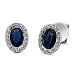 Ohrstecker 18 kt WG. 32 Brillanten 0.14 ct. TW-si. 2 Saphire 1.24 ct blau. H:8.6 mm. B:6.6 mm