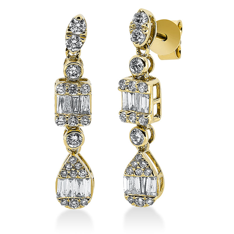 Ohrschmuck 18 kt GG. 16 Baguette 0.33 ct. TW-si. 38 Brillanten 0.56 ct. TW-si. H:25.8 mm. B:4.9 mm. S:2.9 mm