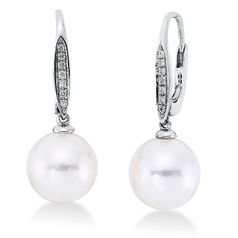 Ohrschmuck 18 kt WG, 14 Brill. 0,07 ct, TW-si, 2 SW weiß 10,5 mm