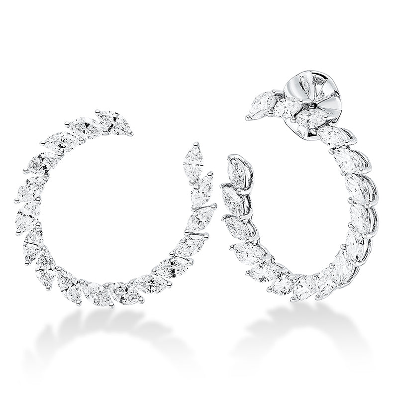 Ohrstecker 18 kt WG. 34 Navette 4.78 ct. F-vsi. H:26.6 mm. B:25.9 mm. S:4.0 mm