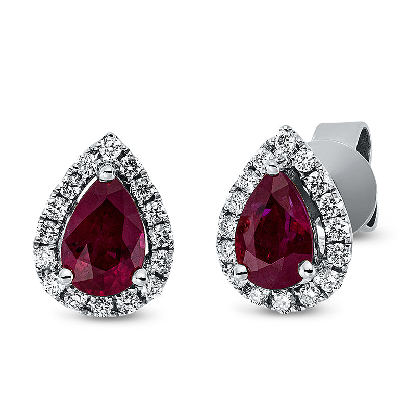 Ohrstecker 18 kt WG, 32 Brill. 0,22 ct, TW-si, 2 Rubine 0,92 ct rot