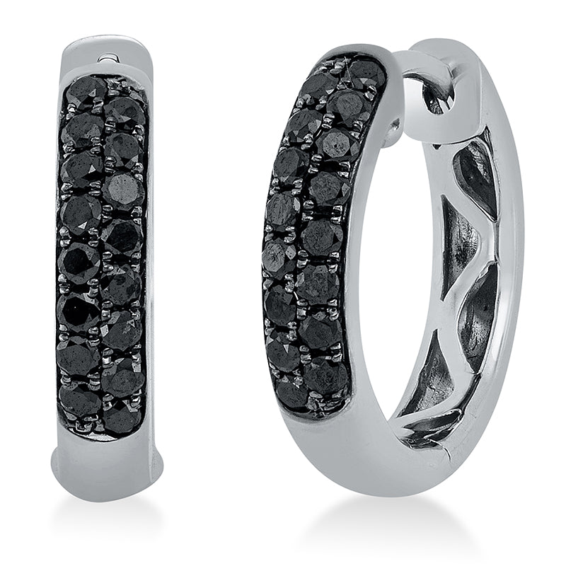 Creolen 18 kt WG. Fassung schwarz rhodiniert. 32 Brillanten 0.38 ct. schwarz. H:14.1 mm. B:15.0 mm. S:3.0 mm