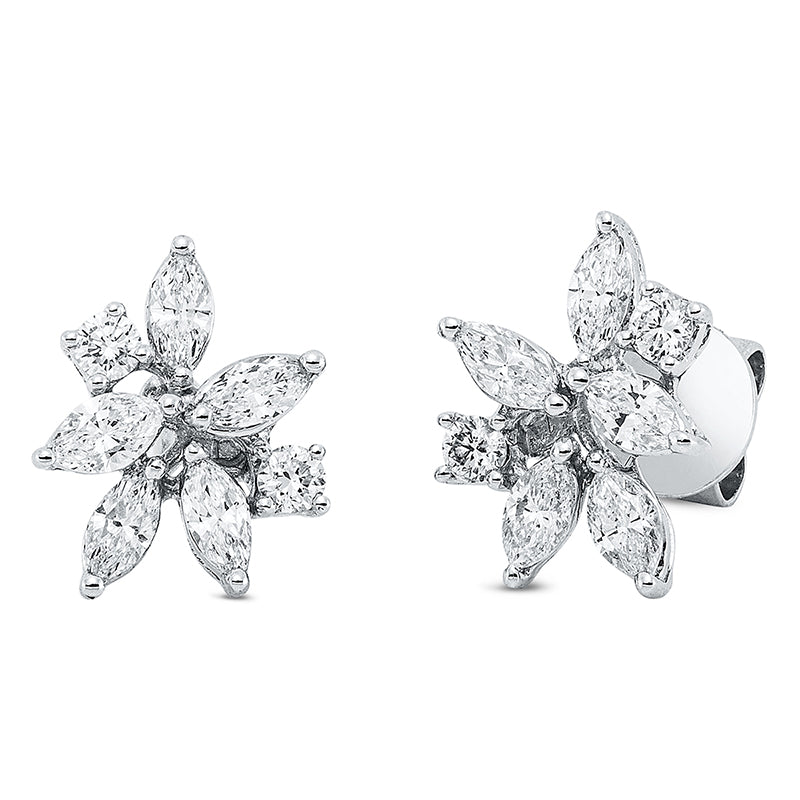 Ohrstecker 18 kt WG. 10 Navette 0.90 ct. TW-si. 4 Brillanten 0.21 ct. TW-si