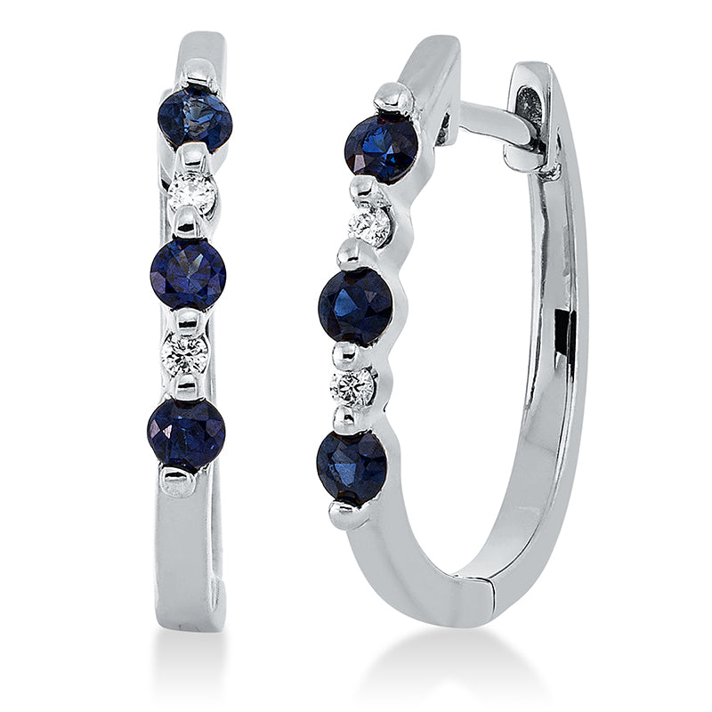 Creolen 18 kt WG, 4 Brill. 0,03 ct, TW-pi, 6 Saphire 0,26 ct blau