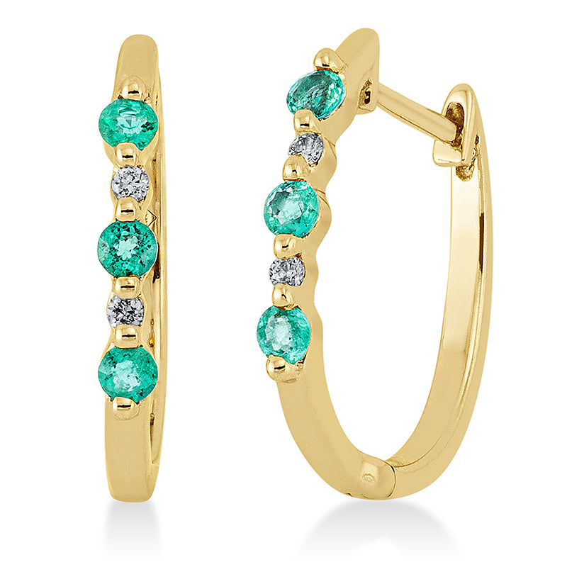 Creolen 18 kt GG, 4 Brill. 0,03 ct, TW-pi, 6 Smaragde 0,20 ct grün