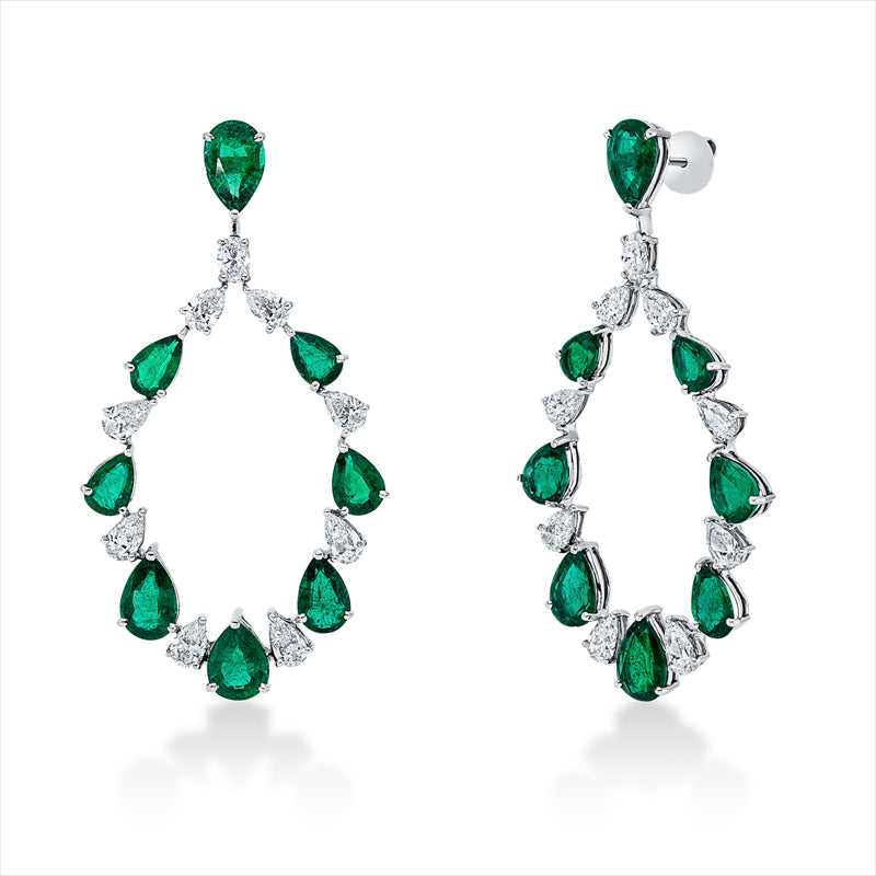 Ohrschmuck 18 kt WG, 18 Brill. 5,62 ct, TW-si, 16 Smaragde 17,25 ct grün