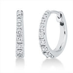 Creolen 18 kt WG. 4 Brillanten 0.05 ct. TW-si. 2 Brillanten 0.05 ct. TW-si. 10 Brillanten 0.05 ct. TW-si. H:10.4 mm. B:11.0 mm. S:2.0 mm