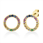 Ohrstecker 18 kt GG Kreis. 6 Saphire 0.09 ct blau. 4 Saphire 0.15 ct grün. 12 Saphire 0.18 ct pink. 2 Tsavorith 0.03 ct grün. 12 Saphire 0.18 ct gelb