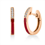 Creolen 18 kt RG. 10 Brillanten 0.05 ct. TW-si. Emaille rot. H:11.5 mm. B:12.4 mm. S:1.4 mm