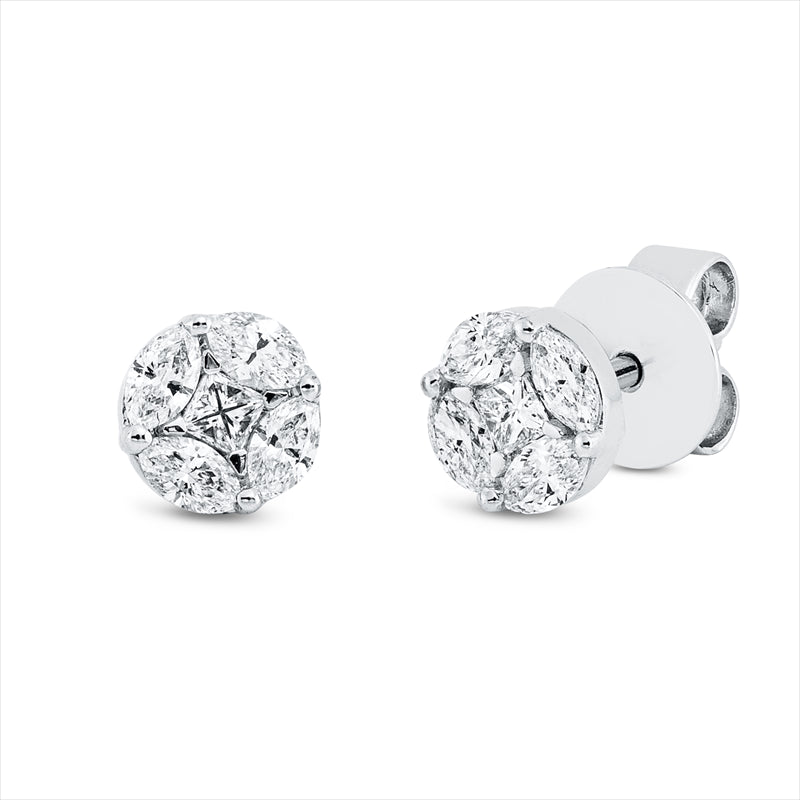 Ohrstecker 18 kt WG. 2 Princ. 0.10 ct. TW-vsi/si. 8 Navette 0.39 ct. TW-vsi/si
