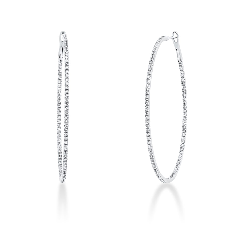 Creolen 18 kt WG. 180 Brillanten 0.90 ct. TW-si. H:45.5 mm. B:46.2 mm. S:1.3 mm