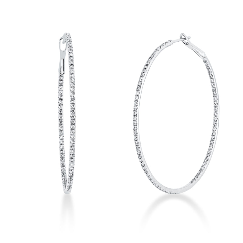 Creolen 18 kt WG. 154 Brillanten 0.80 ct. TTLB-si. H:40.0 mm. B:40.0 mm. S:1.3 mm