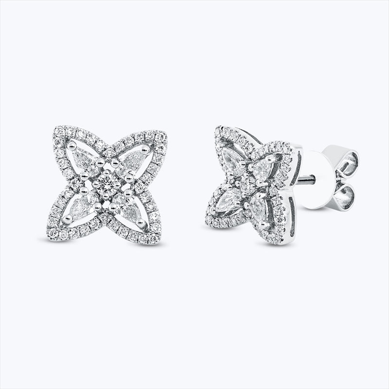 Ohrstecker 18 kt WG. 8 Tropfen 0.31 ct. TW-vsi. 82 Brillanten 0.26 ct. TW-si. H:9.4 mm. B:9.3 mm. S:3.5 mm