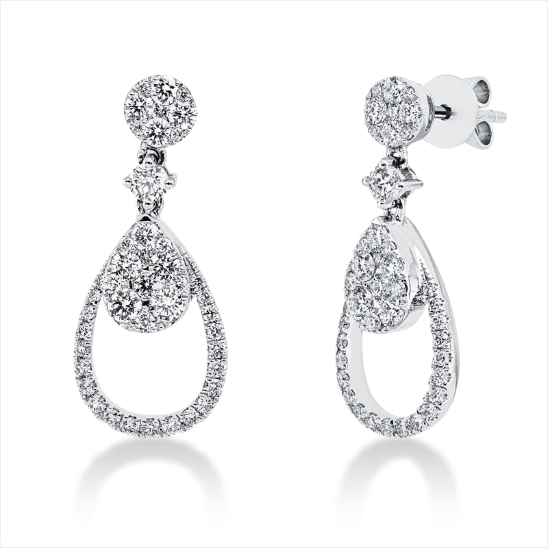 Ohrschmuck 18 kt WG Tropfen. 12 Brillanten 0.13 ct. TW-si. 19 Brillanten 0.72 ct. TW-si. 54 Brillanten 0.30 ct. TW-si