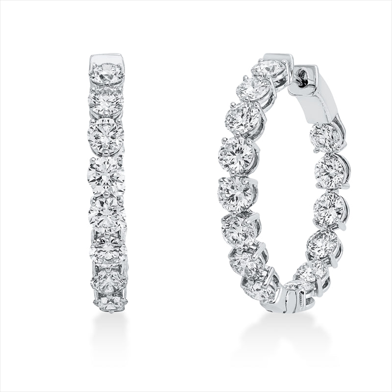 Creolen 18 kt WG, 3 Brill. 0,79 ct, I-si, 25 Brill. 6,31 ct, F-vvs