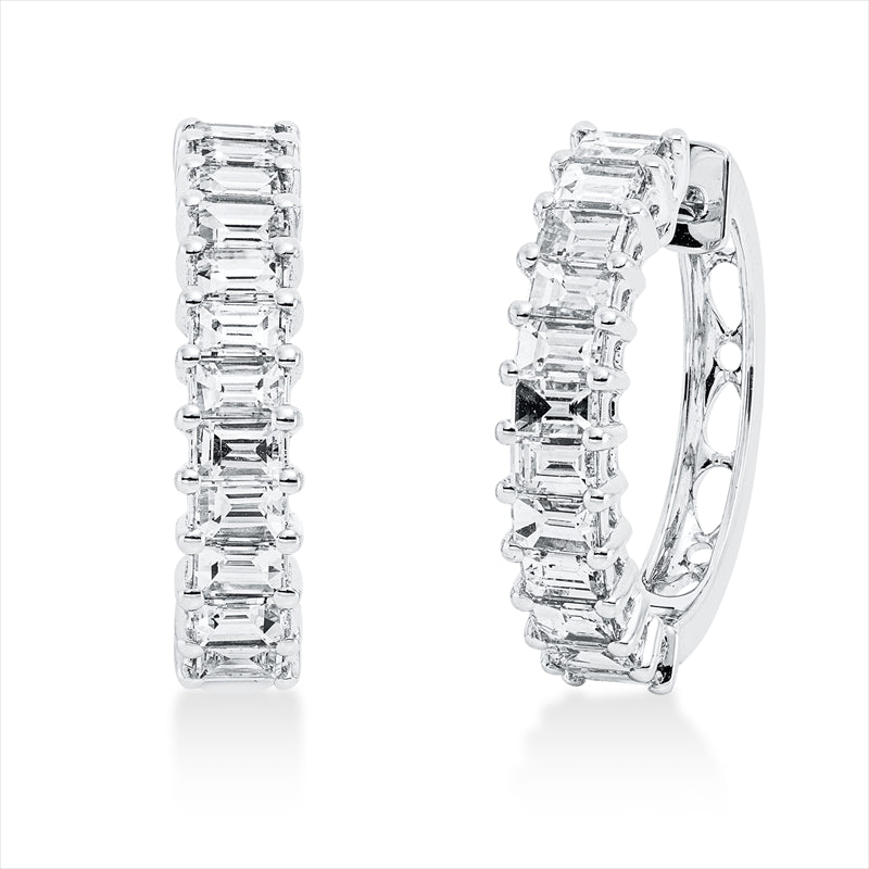 Creolen 18 kt WG. 24 Baguette 2.69 ct. TW-vsi. H:21.8 mm. B:19.0 mm. S:4.8 mm