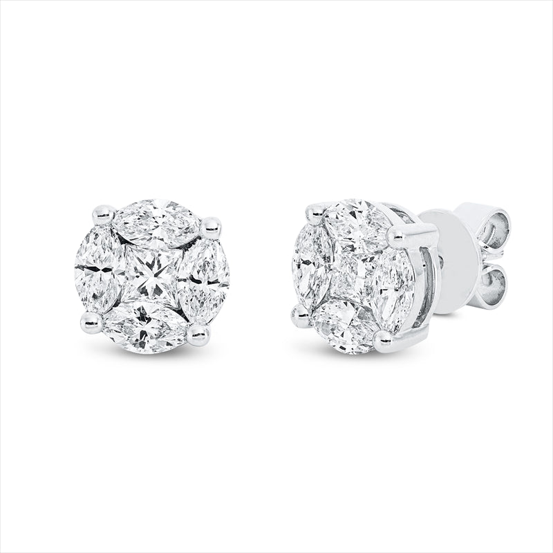 Ohrstecker 18 kt WG, 8 Nav. 1,64 ct, TW-vsi/si, 2 Princ. 0,53 ct, F-vvs