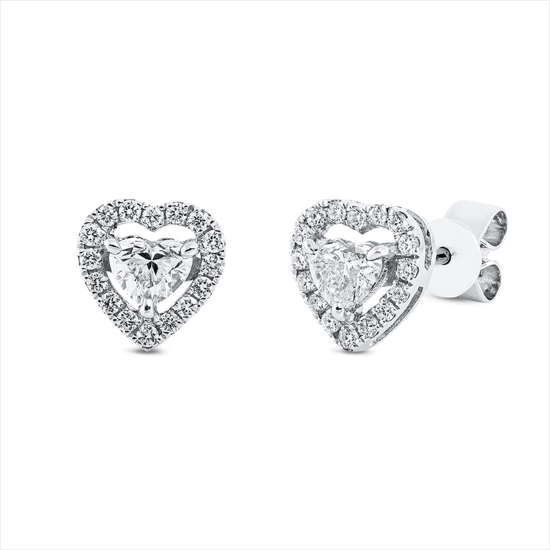 Ohrstecker 18 kt WG, 2 Herzschl. 0,37 ct, TW-vsi, 32 Brill. 0,17 ct, TW-si