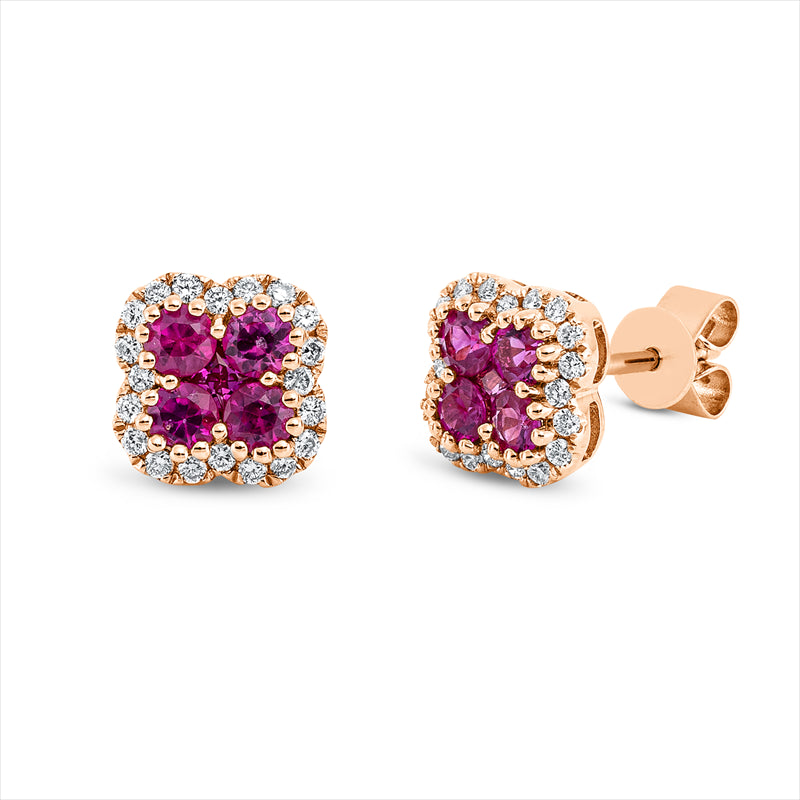 Ohrstecker 18 kt RG, 40 Brill. 0,20 ct, TW-si, 10 Saphire 0,74 ct pink