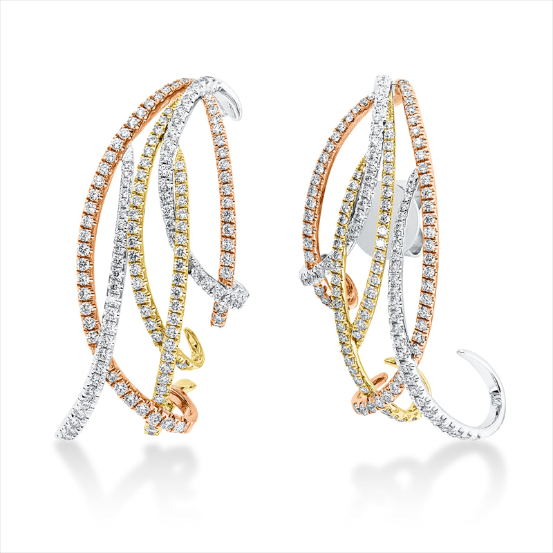 Ohrschmuck 18 kt WG+GG+RG, 288 Brill. 1,78 ct, TW-si