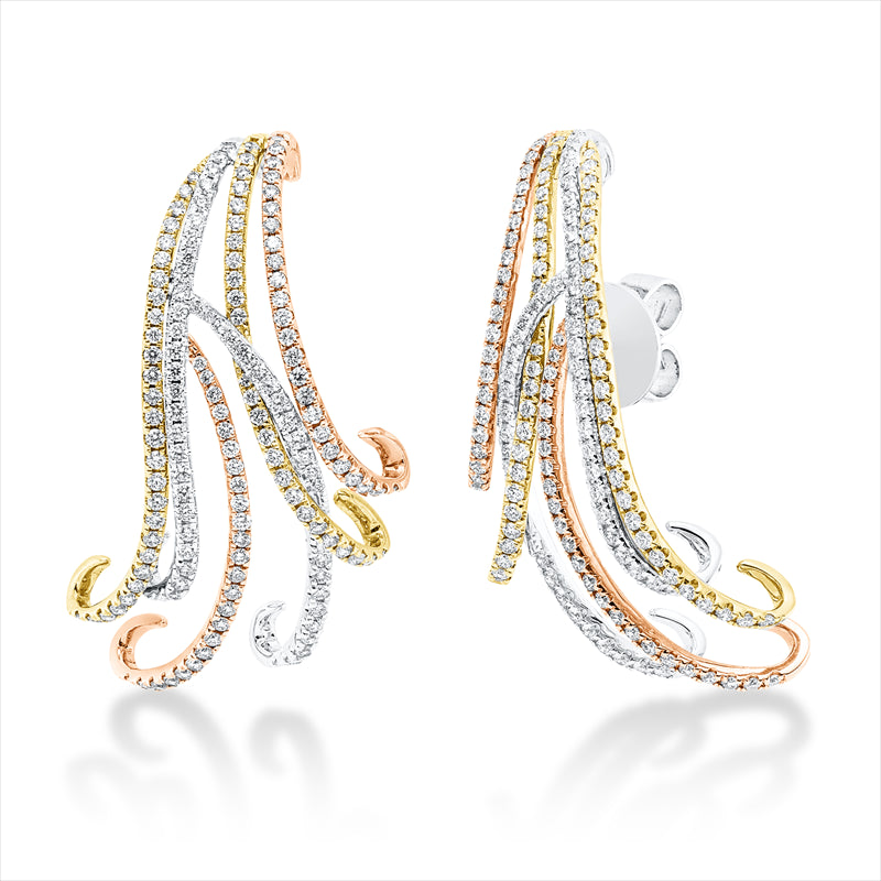 Ohrschmuck 18 kt WG+GG+RG, 300 Brill. 1,79 ct, TW-si