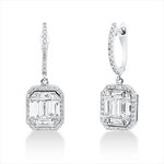 Ohrschmuck 14 kt WG. 12 Baguette 0.77 ct. F-vsi. 2 Baguette 0.16 ct. F-vsi. 152 Brillanten 0.63 ct. F-vsi. H:26.9 mm. B:9.4 mm. S:2.5 mm