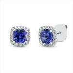 Ohrstecker 18 kt WG. 40 Brillanten 0.29 ct. W-vsi. 2 Tansanit 2.16 ct blau. H:8.9 mm. B:8.9 mm. S:5.0 mm