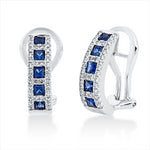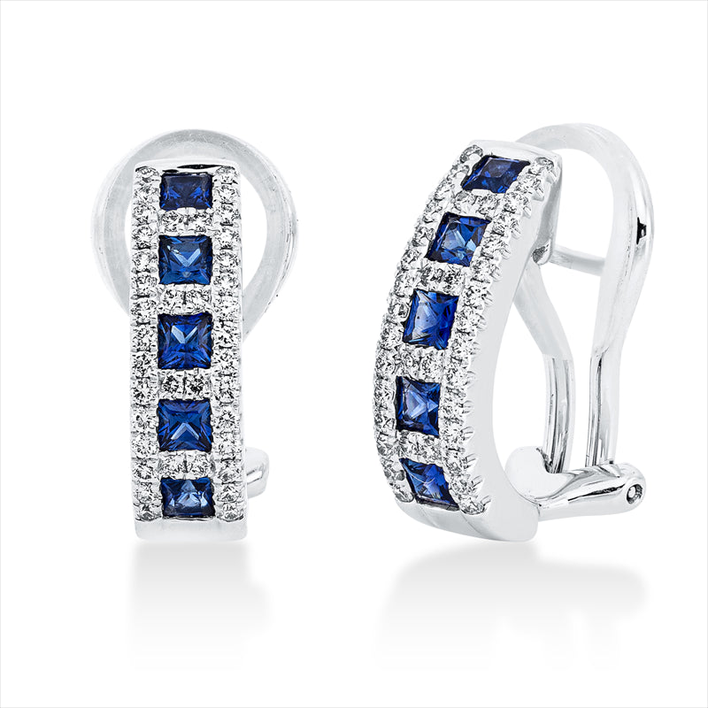 Creolen 18 kt WG. 76 Brillanten 0.29 ct. TW-si. 10 Saphire 0.66 ct blau. H:15.0 mm. B:11.4 mm. S:4.4 mm