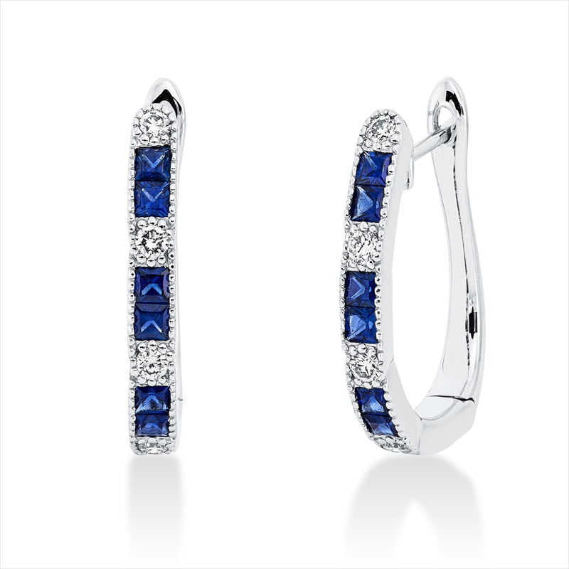 Creolen 18 kt WG, 8 Brill. 0,21 ct, TW-si, 12 Saphire 0,66 ct blau