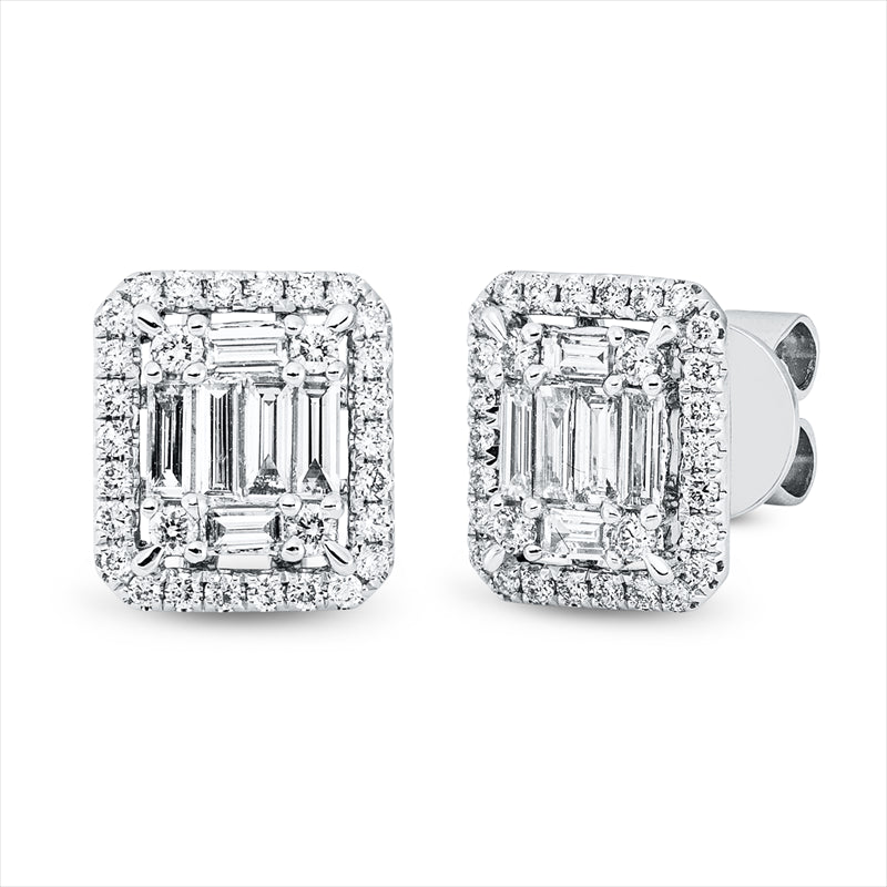 Ohrstecker 18 kt WG. 12 Baguette 0.48 ct. TW-si. 60 Brillanten 0.40 ct. TW-si