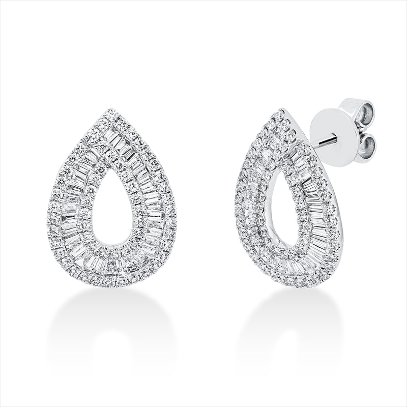 Ohrstecker 18 kt WG, 69 Trap. 0,53 ct, TW-si, 112 Brill. 0,52 ct, TW-si