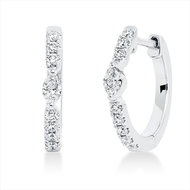 Creolen 18 kt WG, 2 Nav. 0,09 ct, TW-si, 16 Brill. 0,11 ct, TW-si