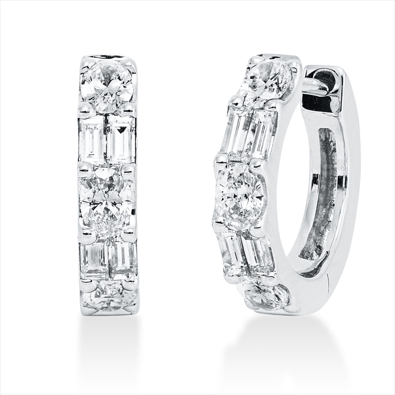 Creolen 18 kt WG. 8 Baguette 0.24 ct. F-vsi. 6 Oval 0.36 ct. F-vsi. H:10.9 mm. B:11.5 mm. S:2.5 mm
