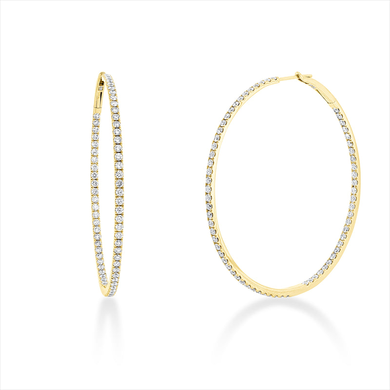 Creolen 18 kt GG. 138 Brillanten 2.59 ct. TW-si. H:50.1 mm. B:50.8 mm. S:1.8 mm