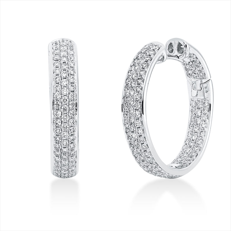 Creolen 18 kt WG. 224 Brillanten 2.01 ct. TW-vsi. H:25.3 mm. B:25.3 mm. S:4.9 mm