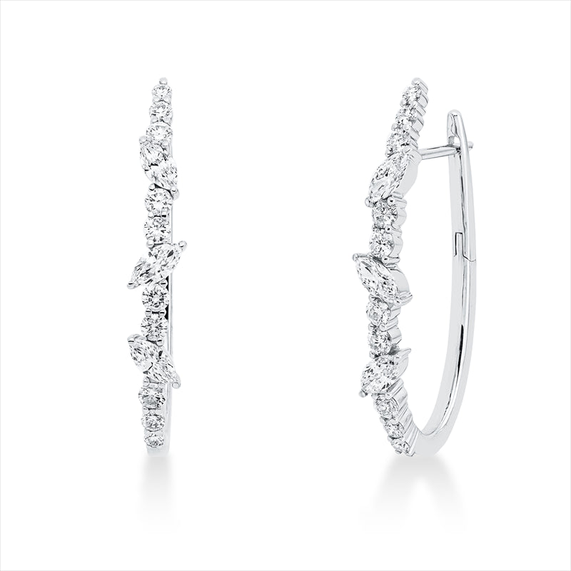 Creolen 18 kt WG. 6 Navette 1.15 ct. TW-vsi. 20 Brillanten 1.09 ct. TW-si