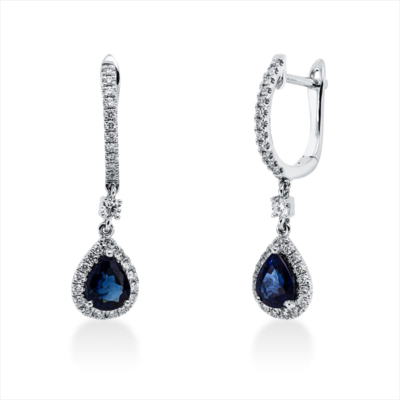 Ohrschmuck 18 kt WG, 2 Brill. 0,08 ct, TW-si, 58 Brill. 0,34 ct, TW-si, 2 Saphire 1,25 ct blau