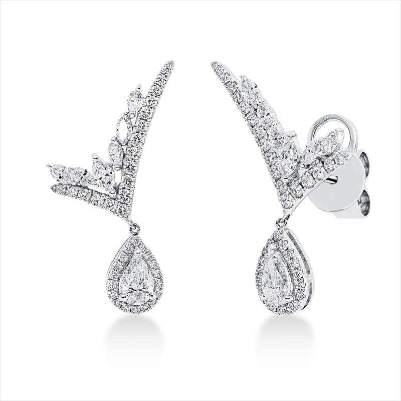 Ohrstecker 18 kt WG. 12 Navette 0.47 ct. TW-vsi. 2 Tropfen 0.41 ct. TW-vsi. 70 Brillanten 0.44 ct. TW-si