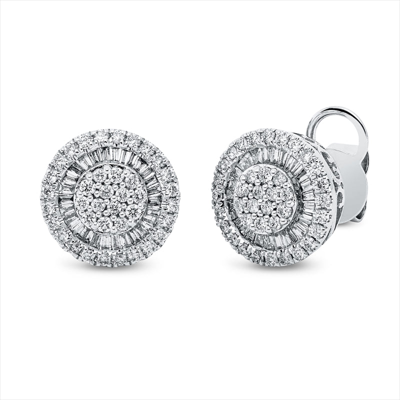 Ohrstecker 14 kt WG, 55 Trap. 0,33 ct, TW-pi, 76 Brill. 0,63 ct, TW-pi