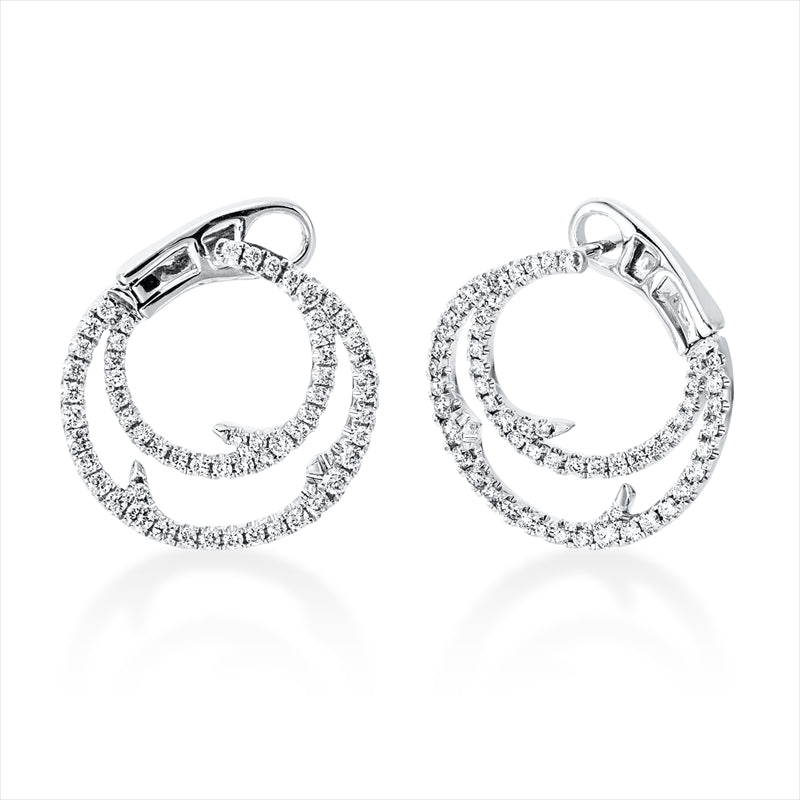 Creolen 18 kt WG. 6 Brillanten 0.07 ct. TW-si. 110 Brillanten 0.48 ct. TW-si. H:15.9 mm. B:15.9 mm. S:1.3 mm