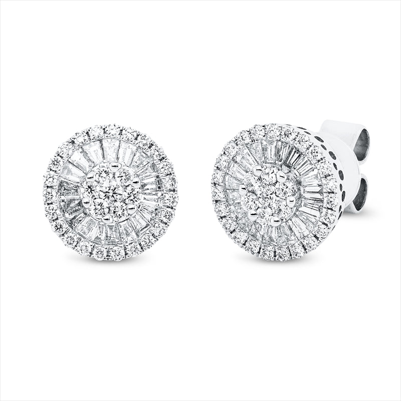 Ohrstecker 18 kt WG. 37 Trapeze 0.41 ct. TW-si. 60 Brillanten 0.33 ct. TW-si. S:4.2 mm. Ø:8.9 mm