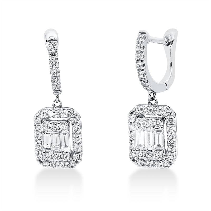 Ohrschmuck 18 kt WG. 6 Baguette 0.50 ct. TW-si. 60 Brillanten 0.85 ct. TW-si