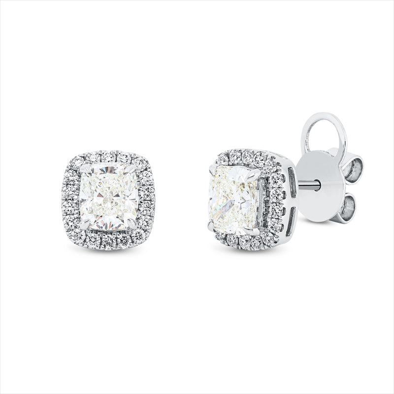 Ohrstecker 18 kt WG. 2 Cushion 2.03 ct. I-si. 36 Brillanten 0.33 ct. TW-si