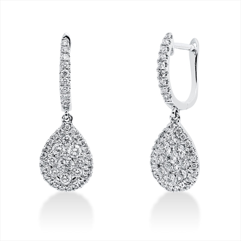 Ohrschmuck 18 kt WG Tropfen. 82 Brillanten 0.88 ct. TW-si. H:25.3 mm. B:8.7 mm. S:2.4 mm
