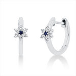 Creolen 18 kt WG. 12 Brillanten 0.17 ct. TW-si. 2 Saphire 0.03 ct blau. H:12.6 mm. B:14.0 mm. S:4.7 mm