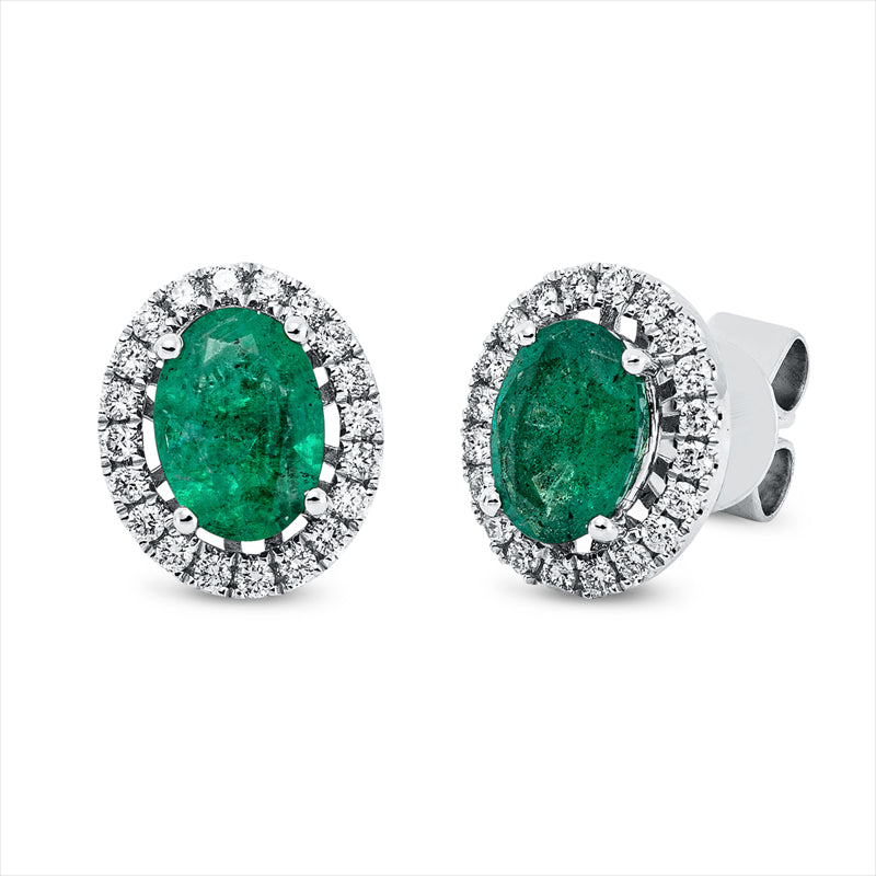 Ohrstecker 18 kt WG. 40 Brillanten 0.24 ct. TW-si. 2 Smaragde 1.24 ct grün