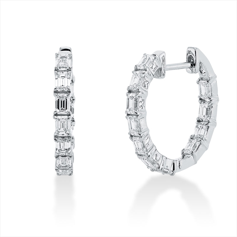 Creolen 18 kt WG. 9 Sm.schliff 0.73 ct. TW-si. 6 Sm.schliff 0.49 ct. TW-si. 7 Sm.schliff 0.61 ct. TW-si. H:17.8 mm. B:18.5 mm. S:2.4 mm