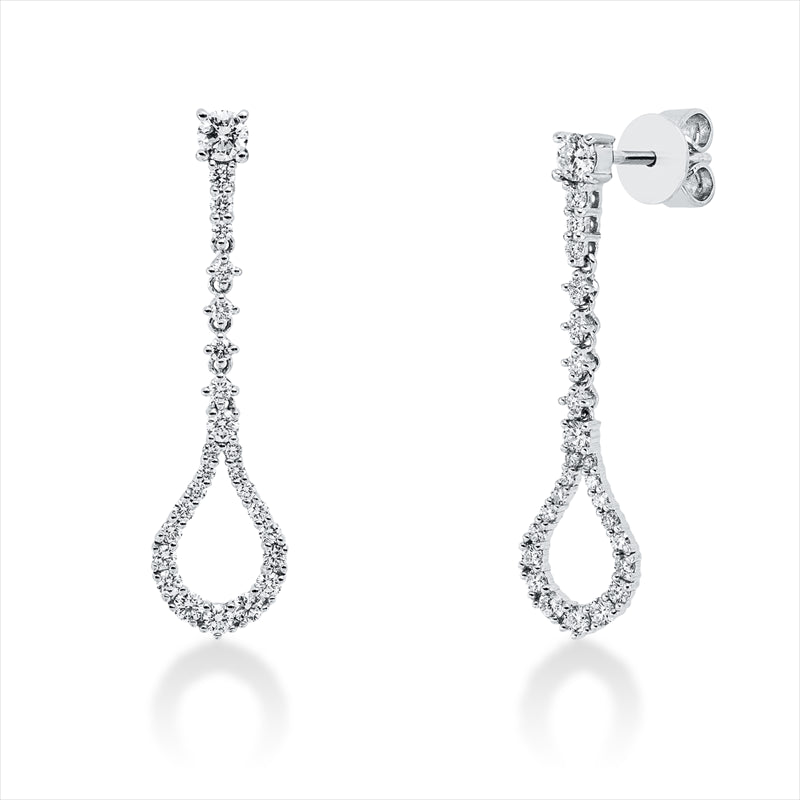 Ohrschmuck 14 kt WG. 14 Brillanten 0.26 ct. TW-si. 2 Brillanten 0.18 ct. TW-si. 36 Brillanten 0.28 ct. TW-si. H:30.4 mm. B:7.6 mm. S:1.4 mm