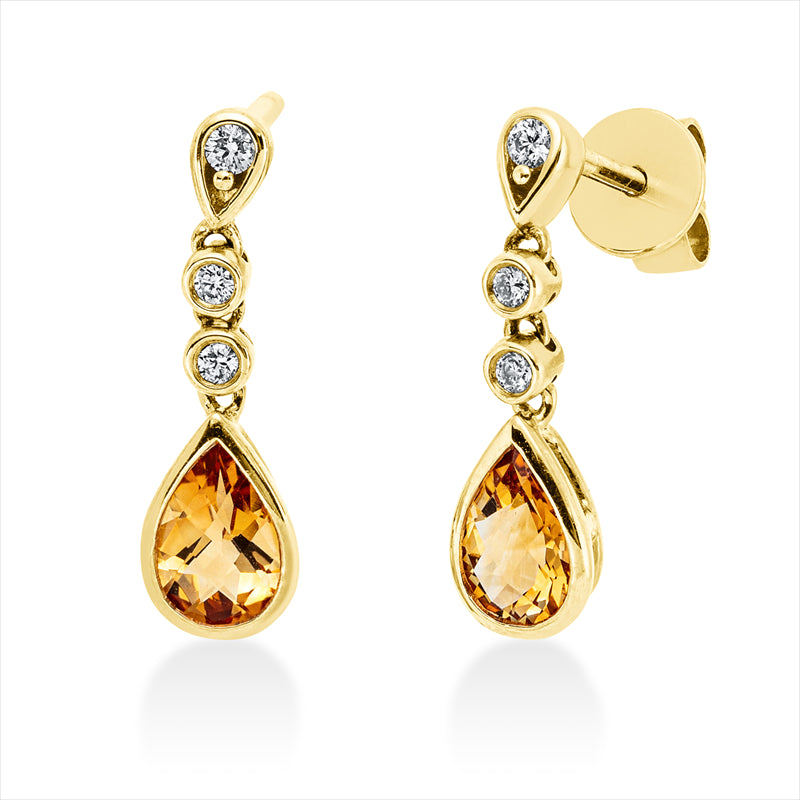 Ohrschmuck 14 kt GG, 6 Brill. 0,08 ct, TW-si, 2 Citrin 0,63 ct gelb