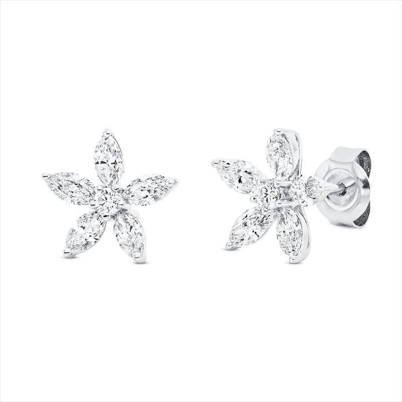 Ohrstecker 18 kt WG. 10 Navette 1.20 ct. TW-vsi. 2 Brillanten 0.09 ct. TW-si